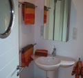 räume mit 2 separaten Bädern. Hiervon ist ein Schlafraum mit Ehebett und 2 weitere Schlafräume in denen die Betten übereinander in Bootsform versetzt angeordnet sind.
